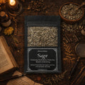 Sage is a powerful and ancient herb long associated with cleansing, purification, wisdom, and protection. In folk magic and ritual practice, it is often used to clear stagnant or unwanted energy, strengthen spiritual boundaries, and create sacred space. Sage has a long history in ceremonial use and is commonly incorporated into rituals for renewal, clarity, and spiritual grounding.